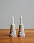 Luxury porcelain candlesticks adorned with our signature Rainbow Pomegranates design. These 5” porcelain candlesticks are slipcast by hand in porcelain and finished with a soft blue glaze. Designed to hold standard Shabbat candles.